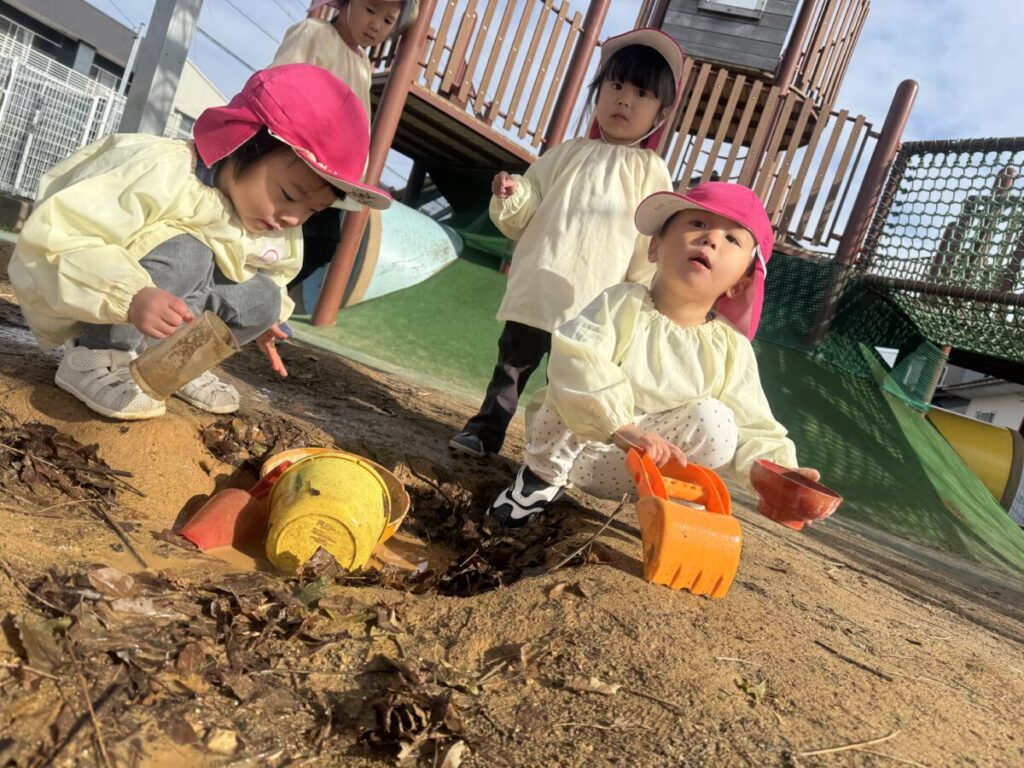 砂場をしたり、遊具であそんだり、泥水の所であそんだり♪