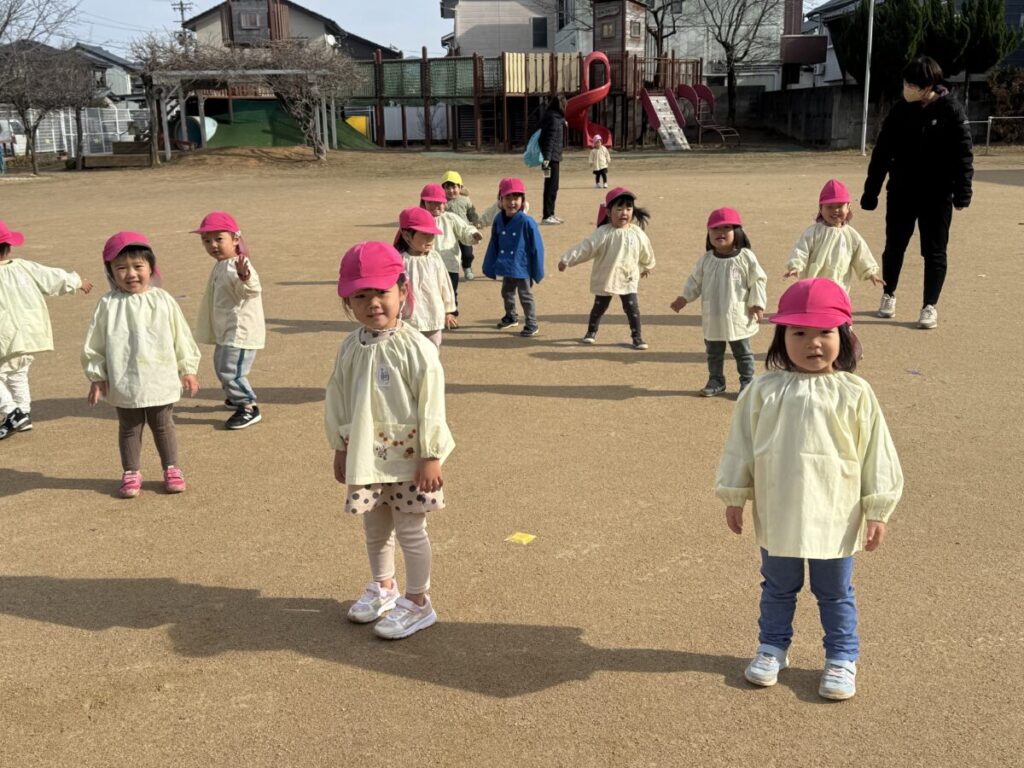 前に年少さんがしていたのをじーと見ていたので、だるまさんが転んだをやってみました!