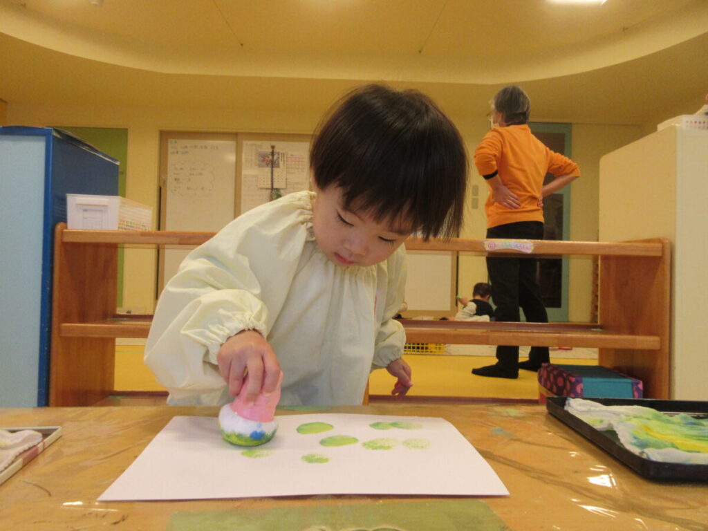 何度もスタンプを押しながら、自分だけの色合いを楽しんでいました。