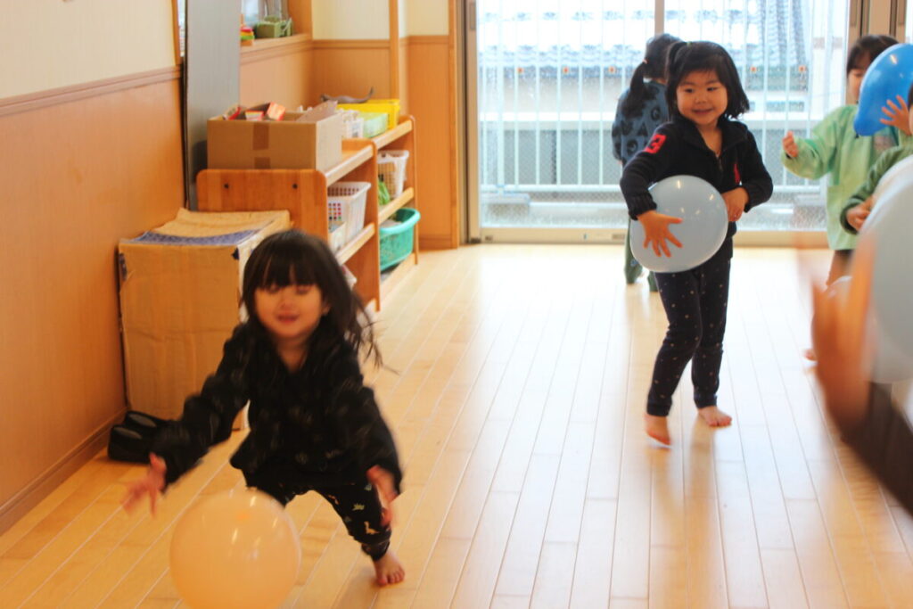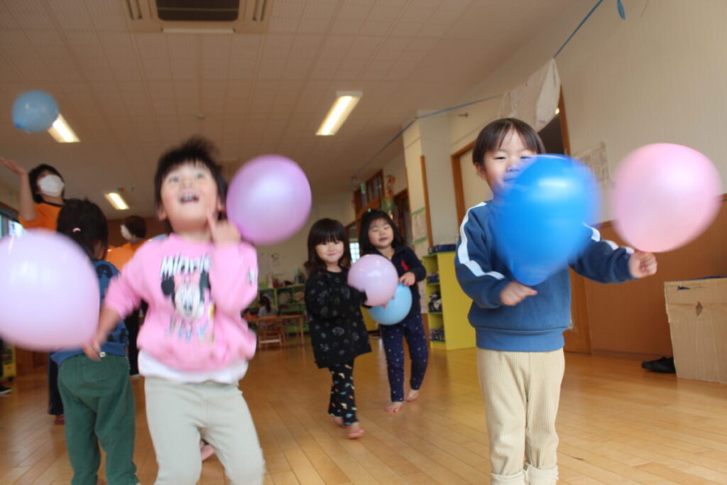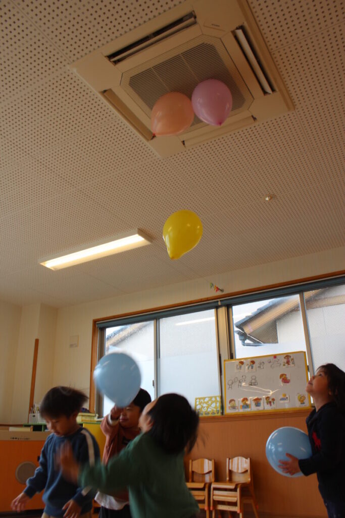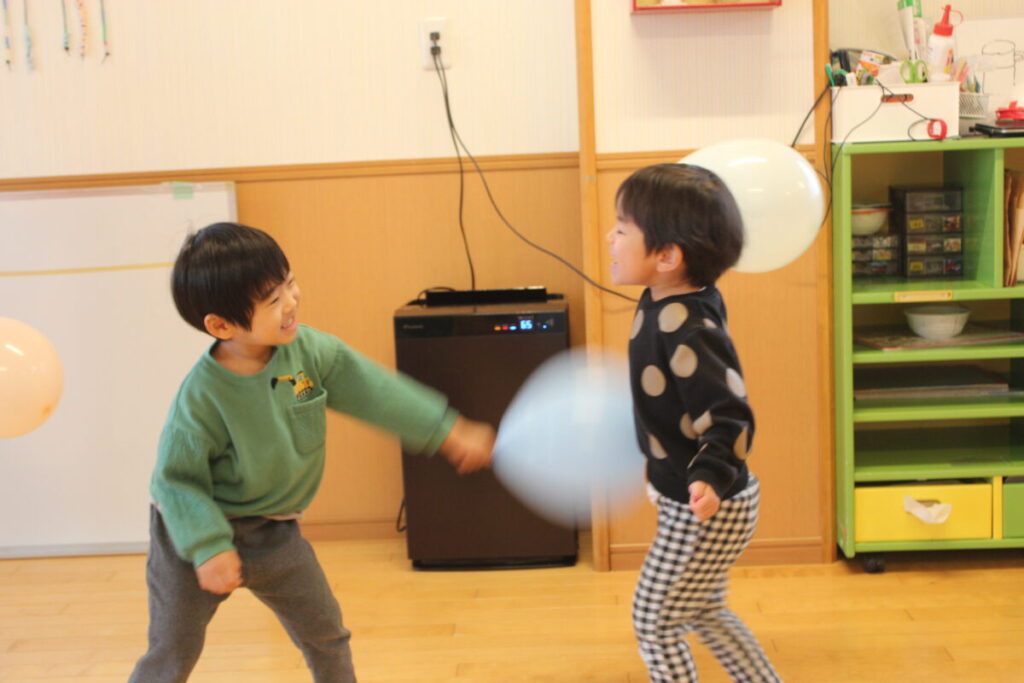 今日は風船あそびで盛り上がりました。