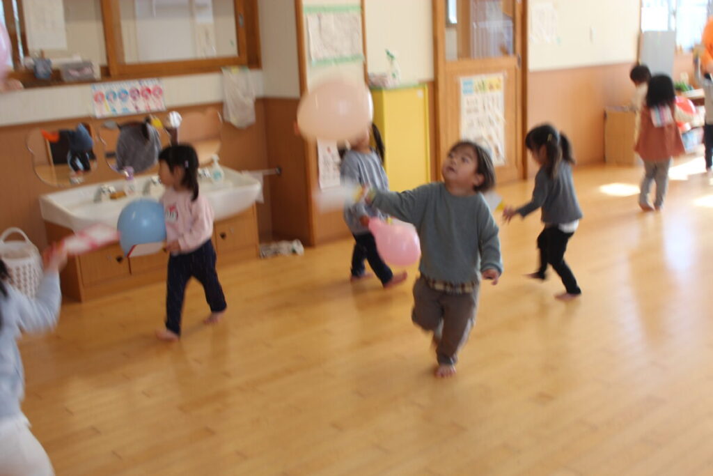 羽子板あそびは昨日の風船あそびに引き続いて、道具を使っての?!あそびに。