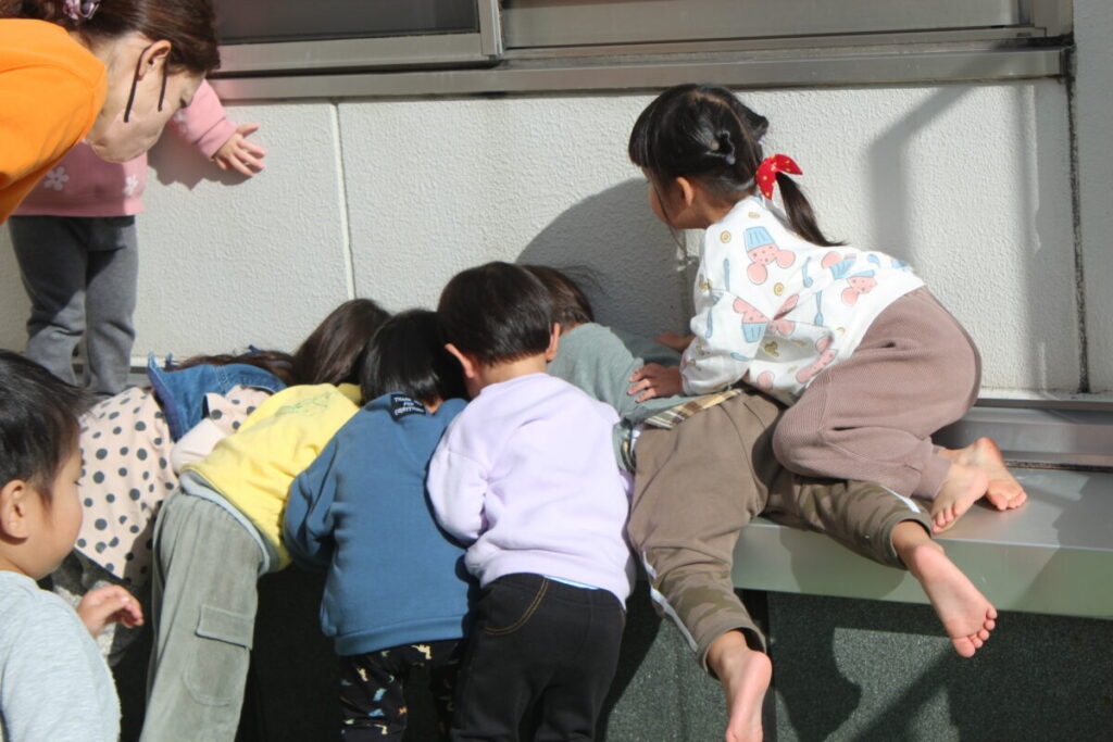 ちゅうりっぷ組さんとお参り&羽子板あそび・コマあそびをしました。