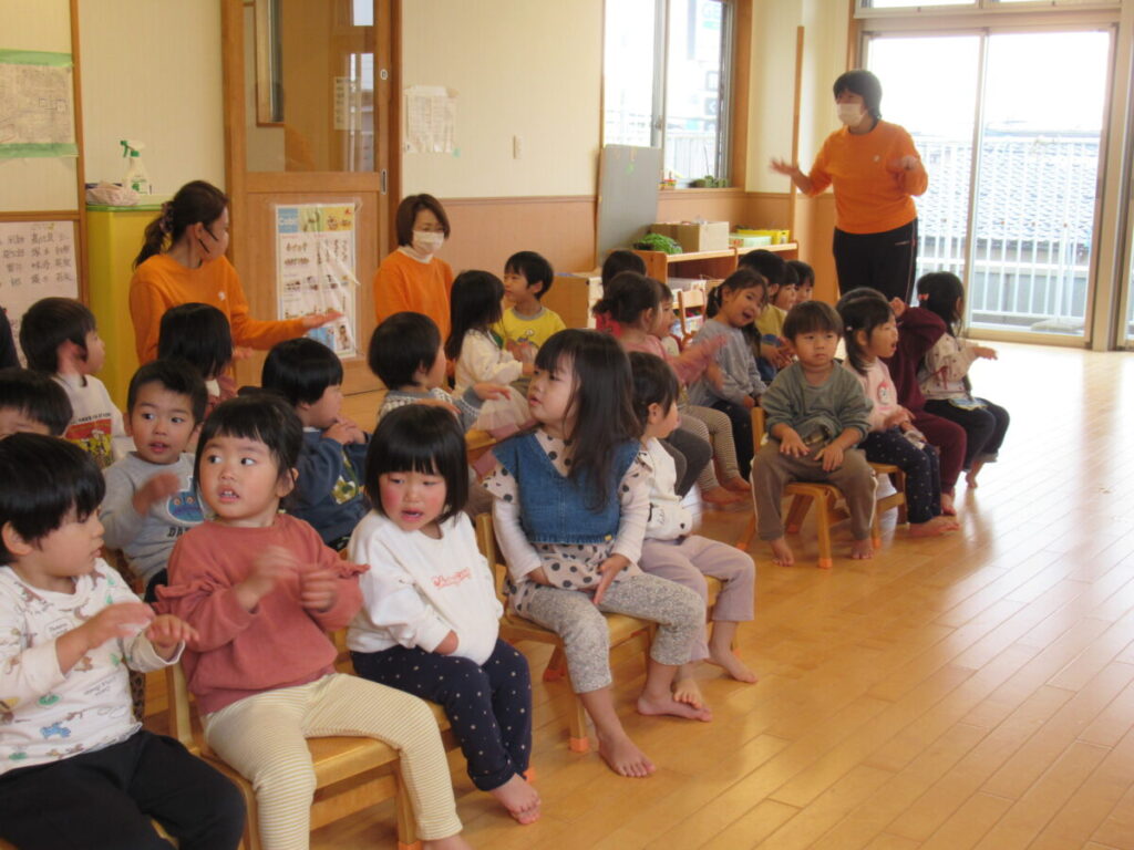 2クラスを使ってお正月あそびを行いました。