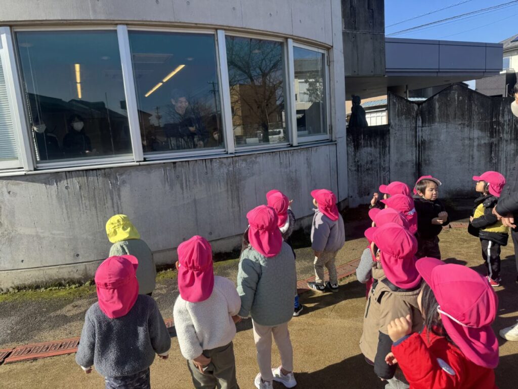 職員室に園長先生がいるのが見えたので「えんちょうせんせーい!!おはようございます!!!」と外から大きな声で呼んでいると気づいてくれました!!