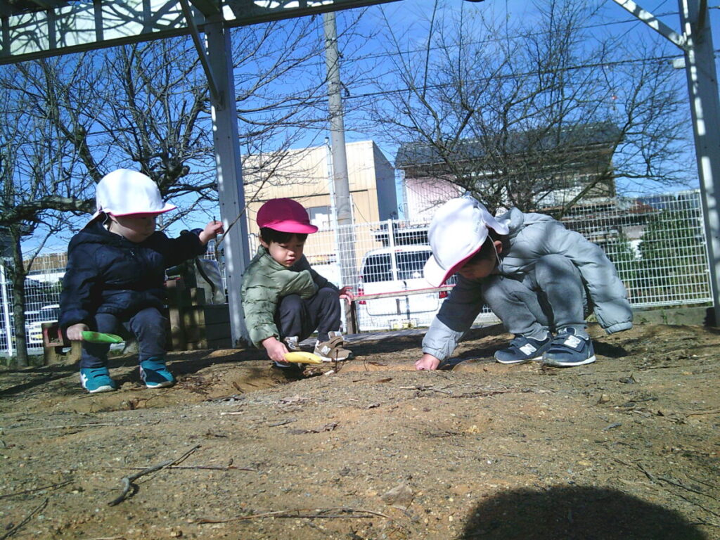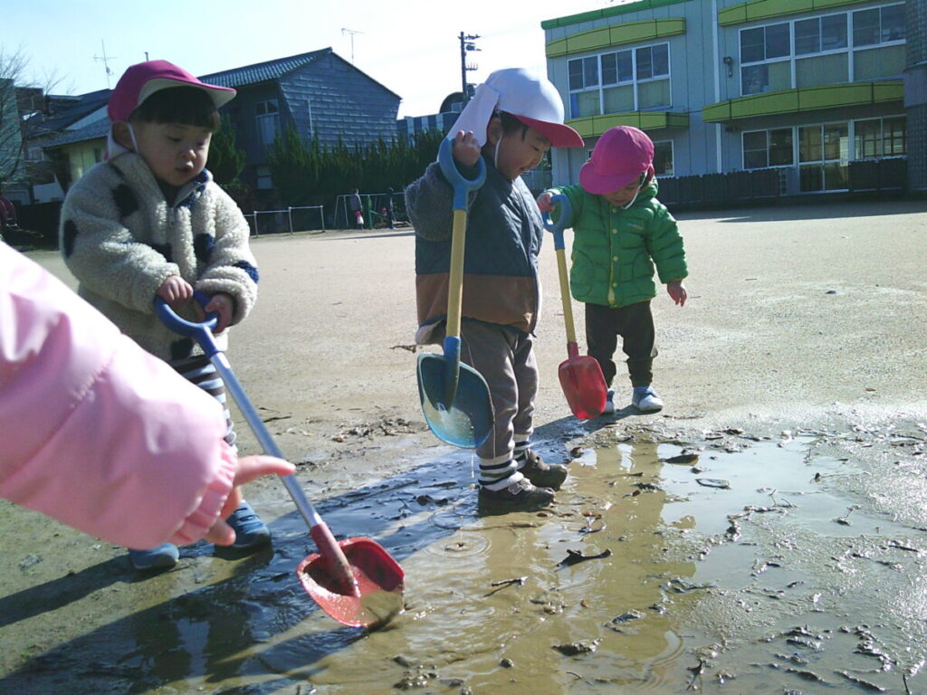 いつの間にか、某温泉の湯もみ?のようにお友だち同士でスコップを動かしていたのでした。