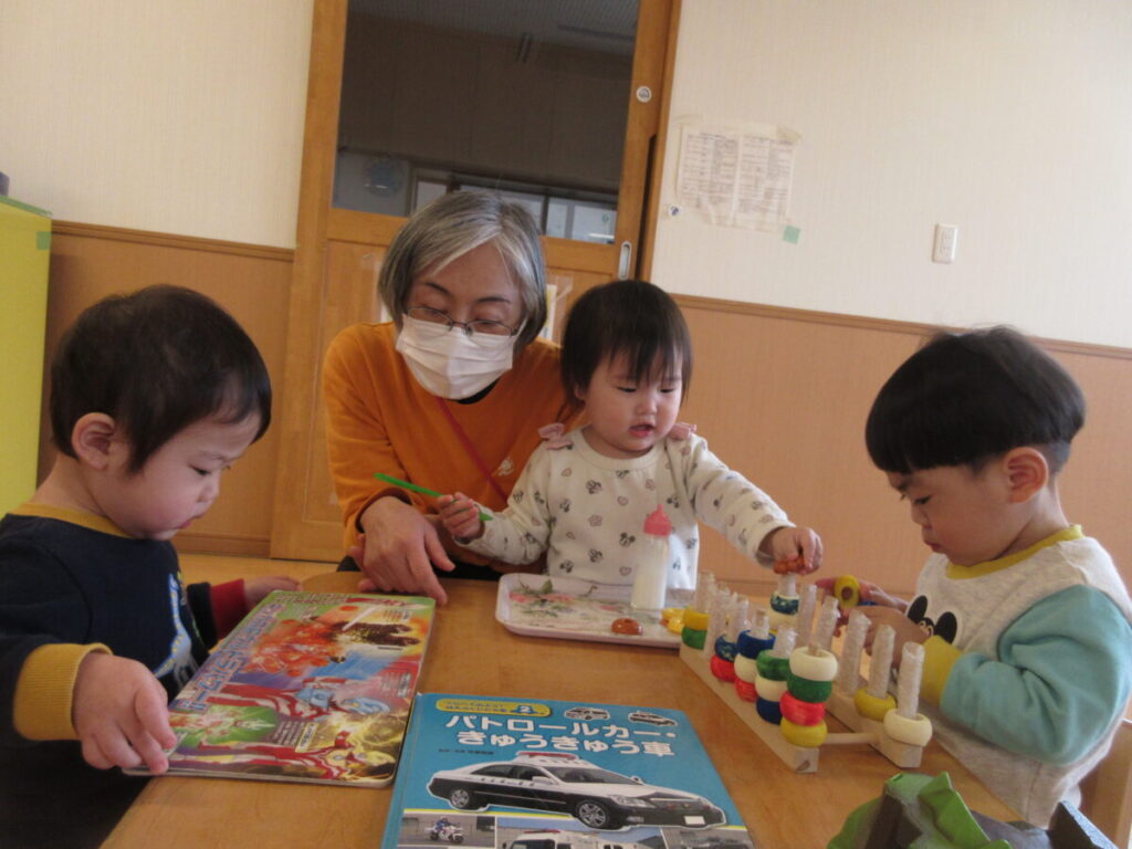 すみれ組。2歳児さんのお部屋にお邪魔しました!