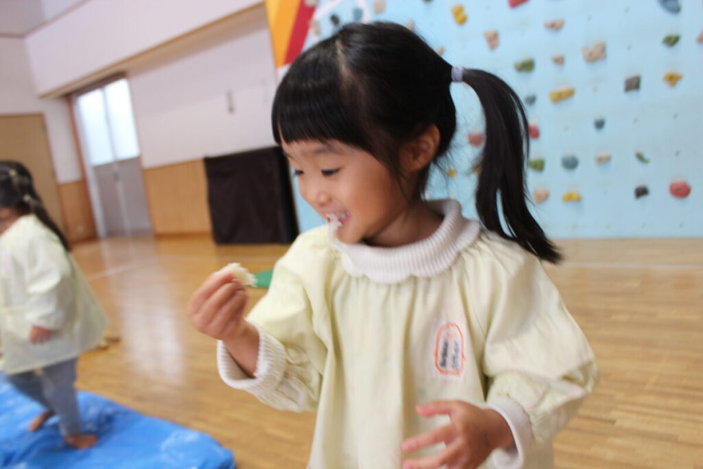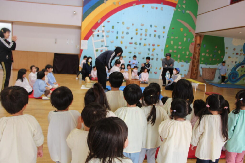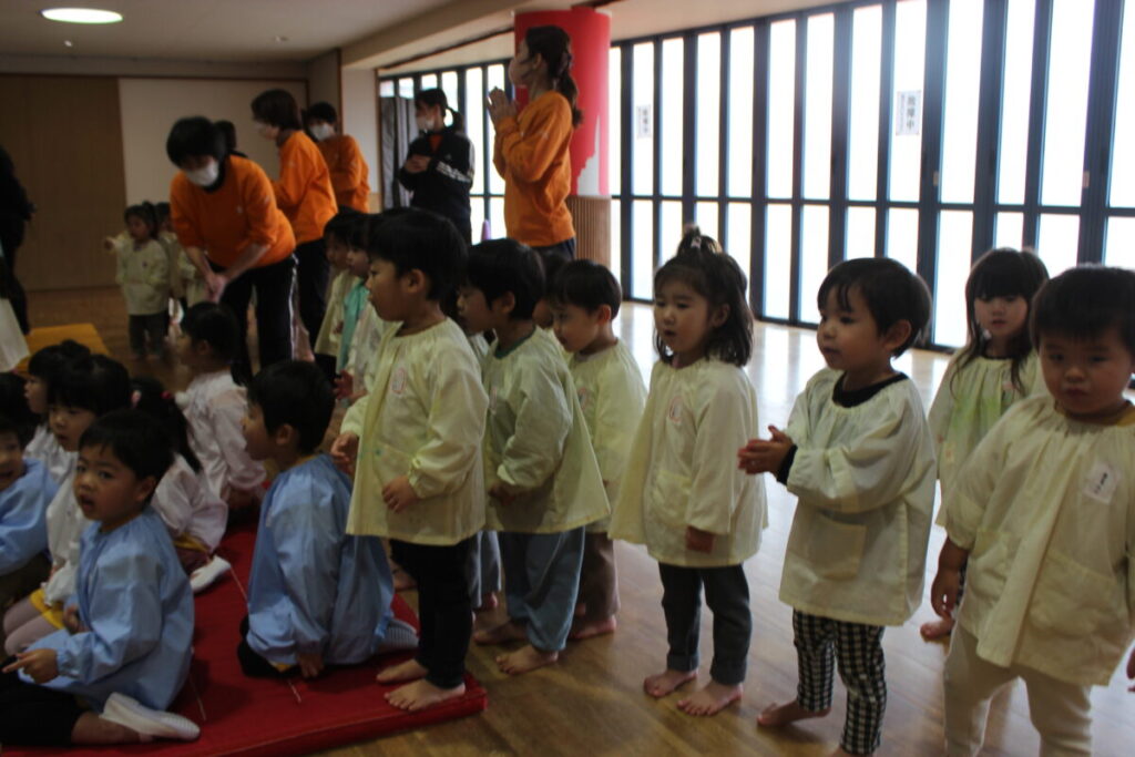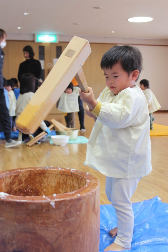 まずは年少組のお兄さん・お姉さんのお餅つきの様子を見学。