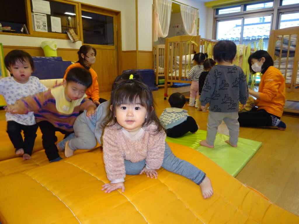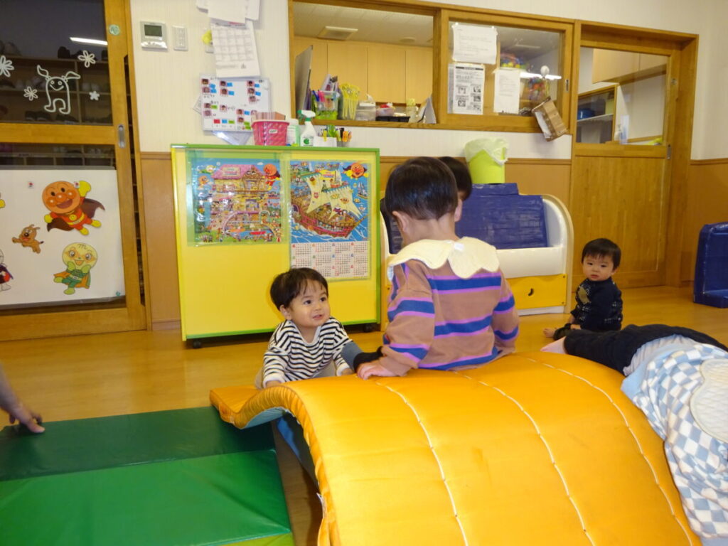 マットを少し高くすると頑張って登ろうとする姿が見られました。