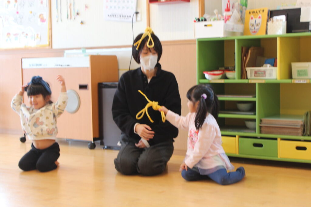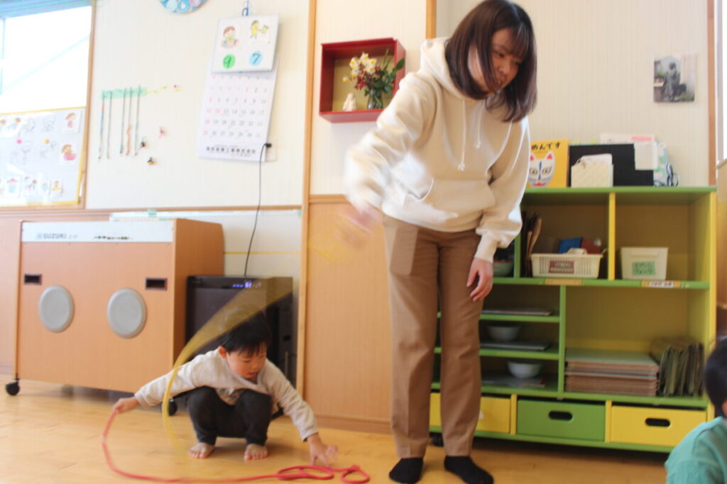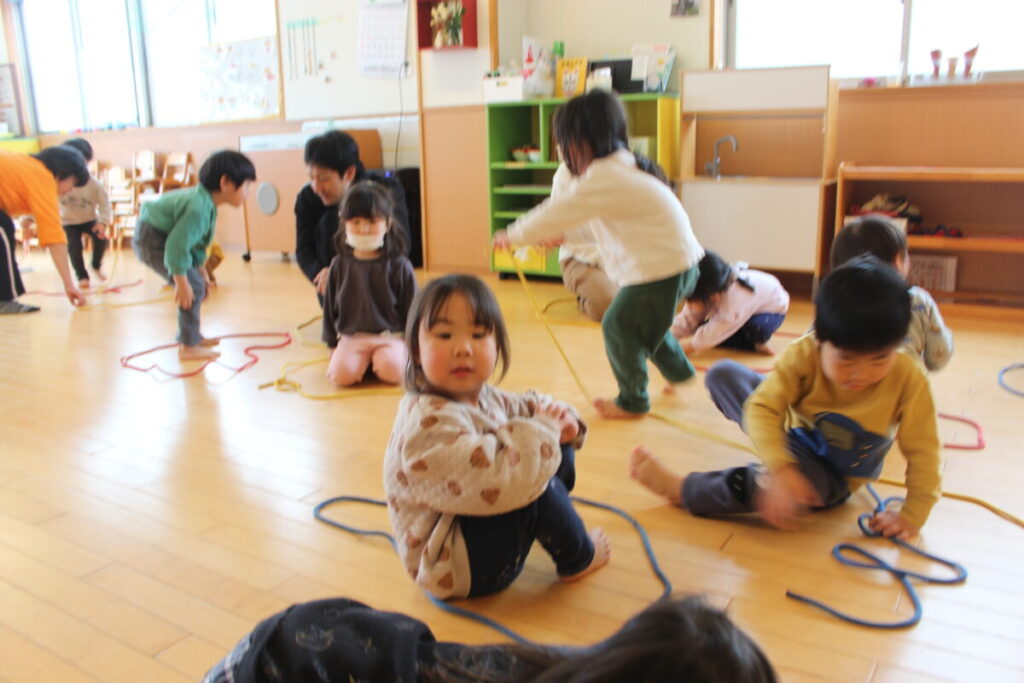 今日は縄とびを使ってあそびました。