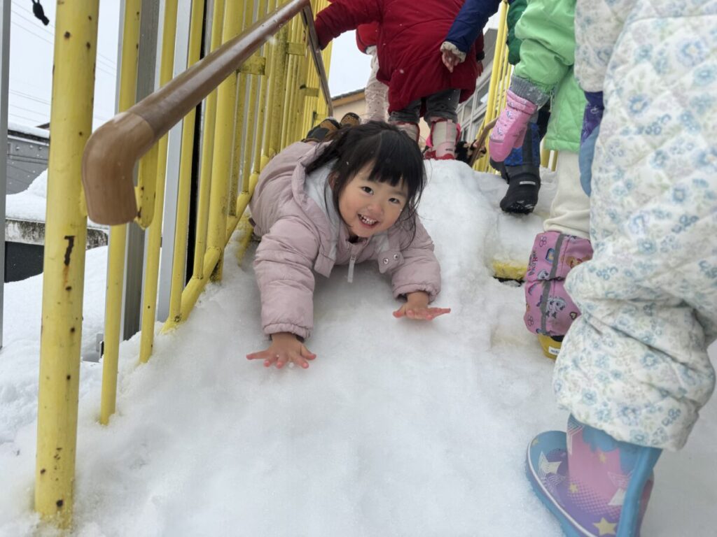 子どもたちはとってもうれしそう♪雪あそびのお洋服を持ってきている子はルンルン♪