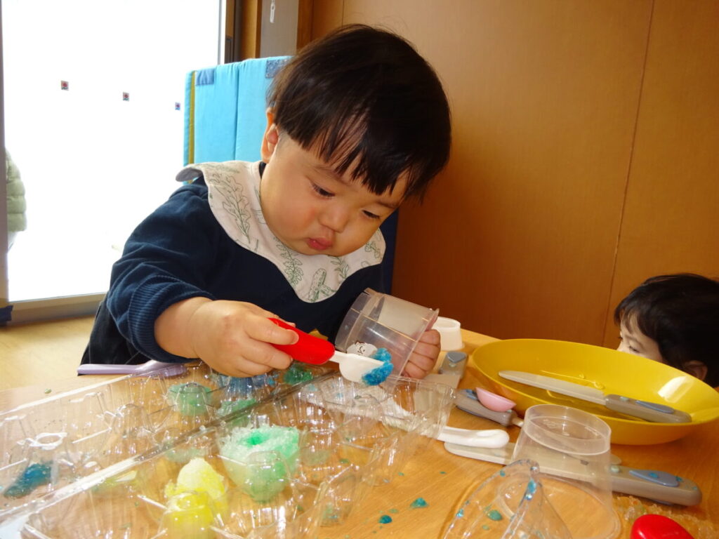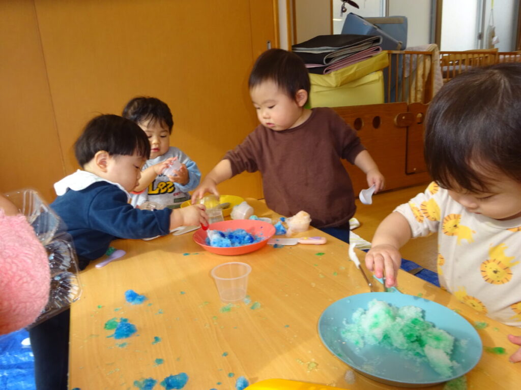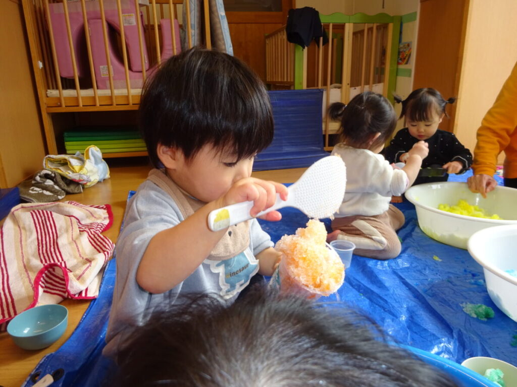 こちらでは、かき氷を上手に作っていたお友だちです。