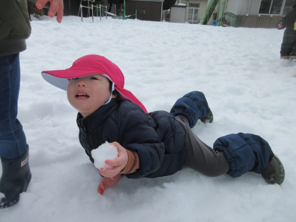 ころんでも大事な雪玉は離せません!