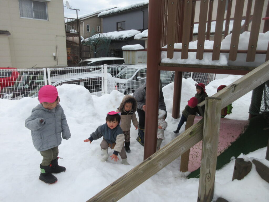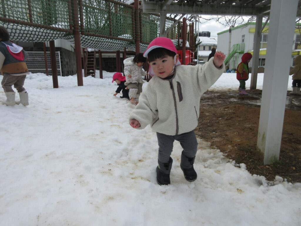さて、一面雪の園庭に出かけました!
