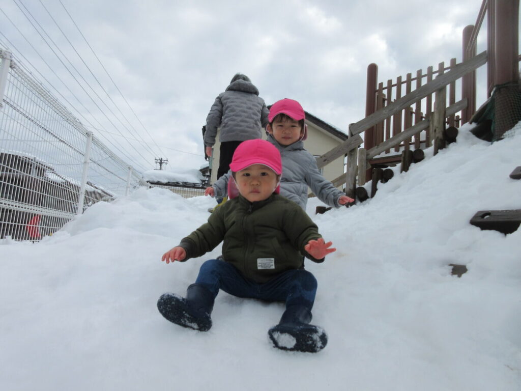 雪の滑り台!