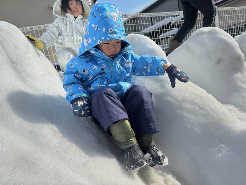 スノーウェアを着るのも片付けるのも自分で行おうとし、上手くいかなくてもできた!と毎日の積み重ねを感じます。