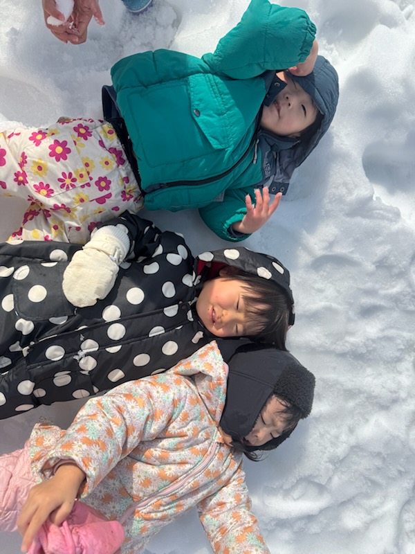 こちらの3にんも寝たい!と寝転んでみましたが、思ったよりも、冷たい、まぶしい、、と(笑)(笑)