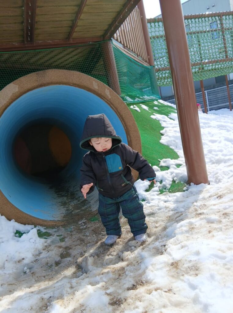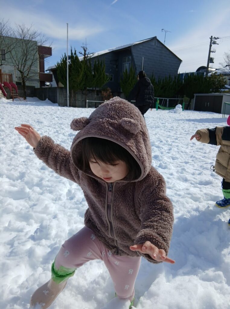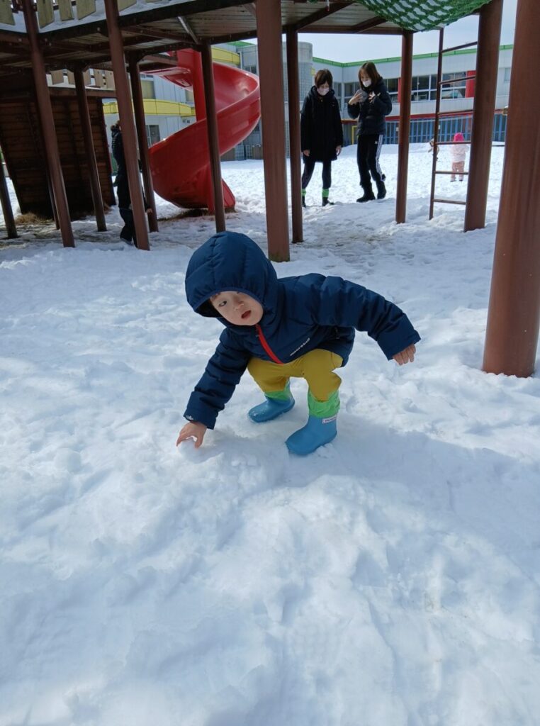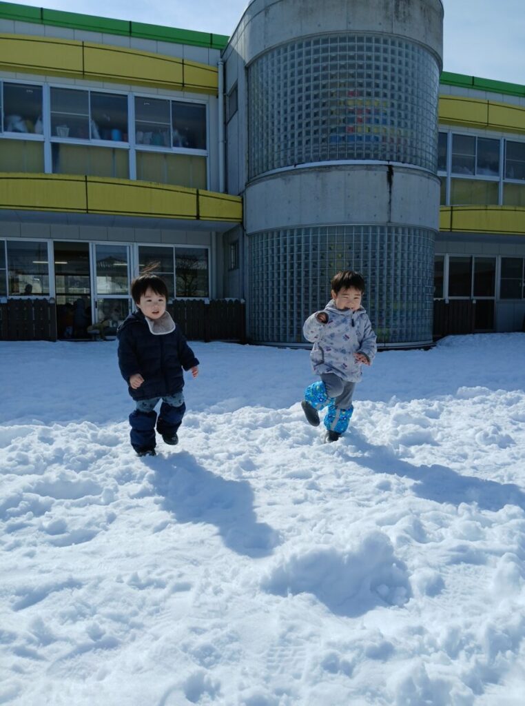 園庭の銀世界へ行くぞ~