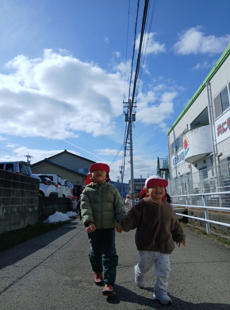 その後は給食をいただいた後に、園裏の道路で疾走??