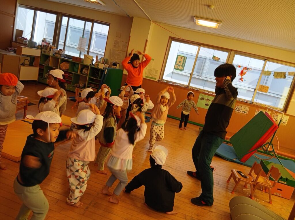 初めての体操で、音楽にもダンスにも???となっていましたが、徐々に慣れてきて真似して踊っていました。