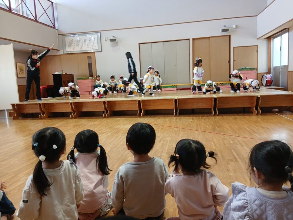 今日も年少組さんの劇を見させていただきました。