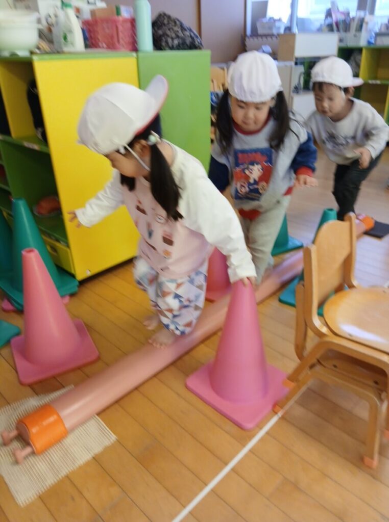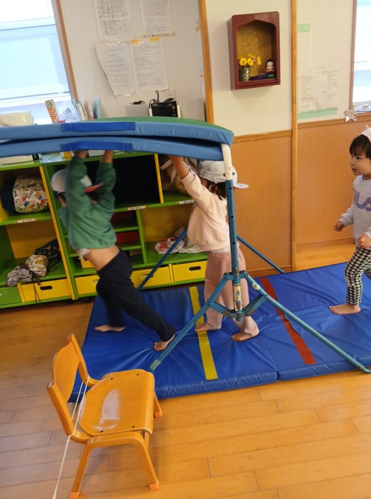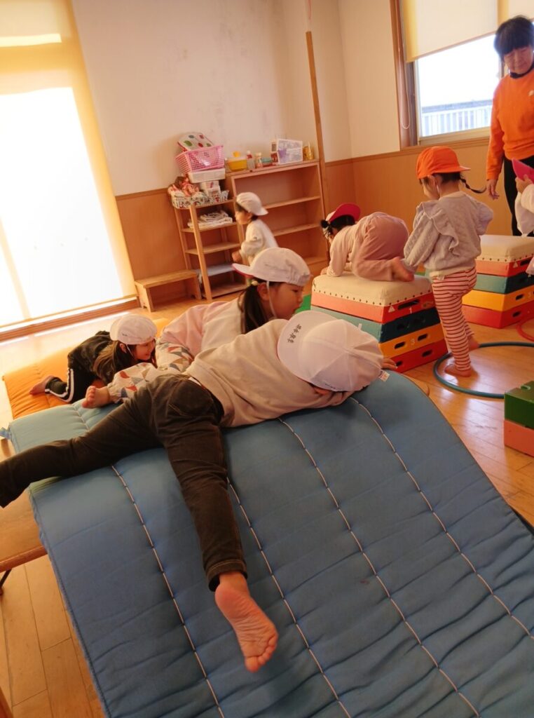 跳び箱にお尻で乗ってみたり、山を越えたり