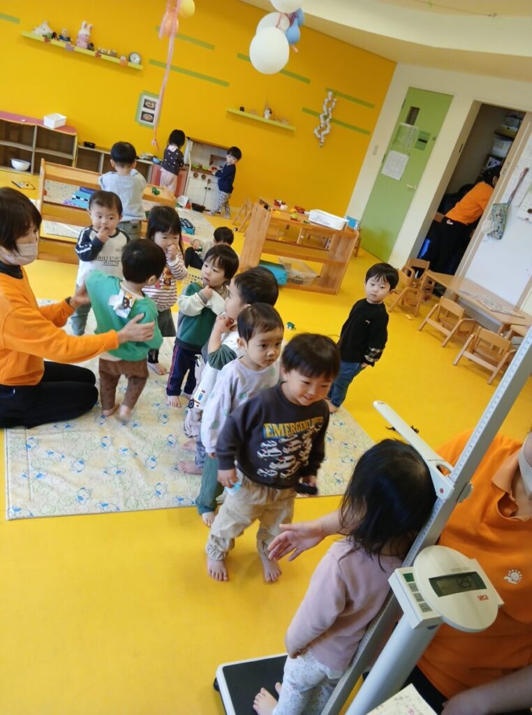(本日測定した結果はピンクの用紙に記入してありますが、来月から連絡帳がルクミーになりますので、ピンクの用紙を一旦預からせていただきます。3月の身体測定後記入してお返しいたしますね)