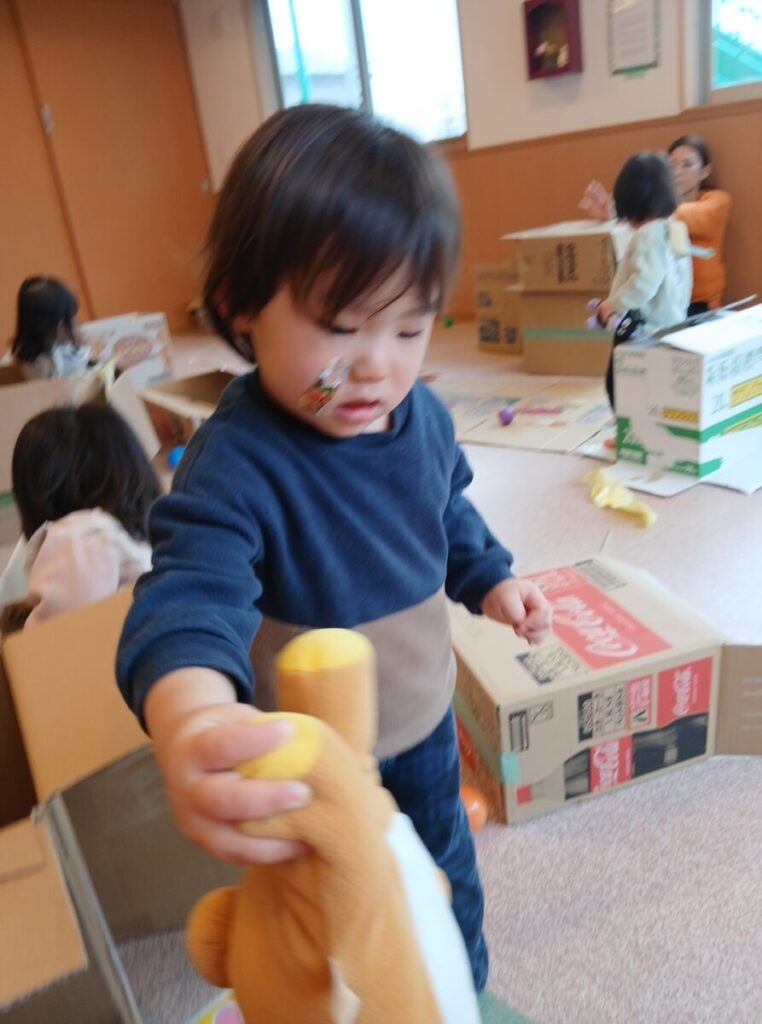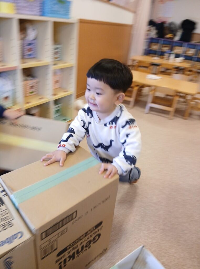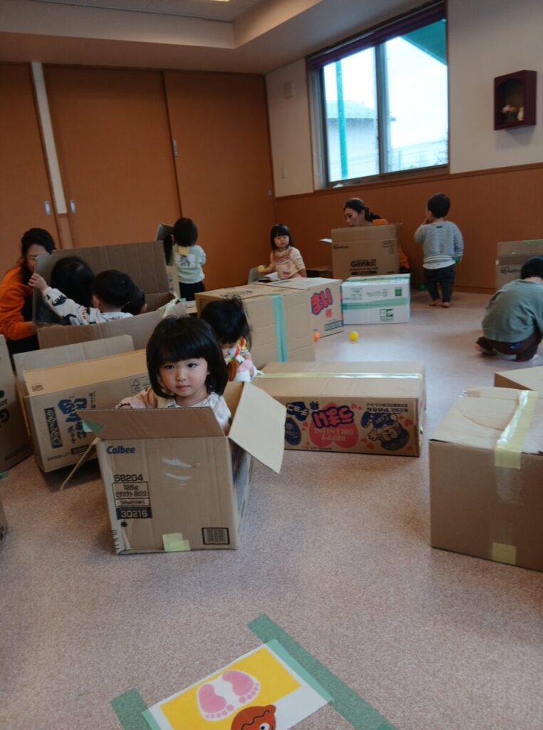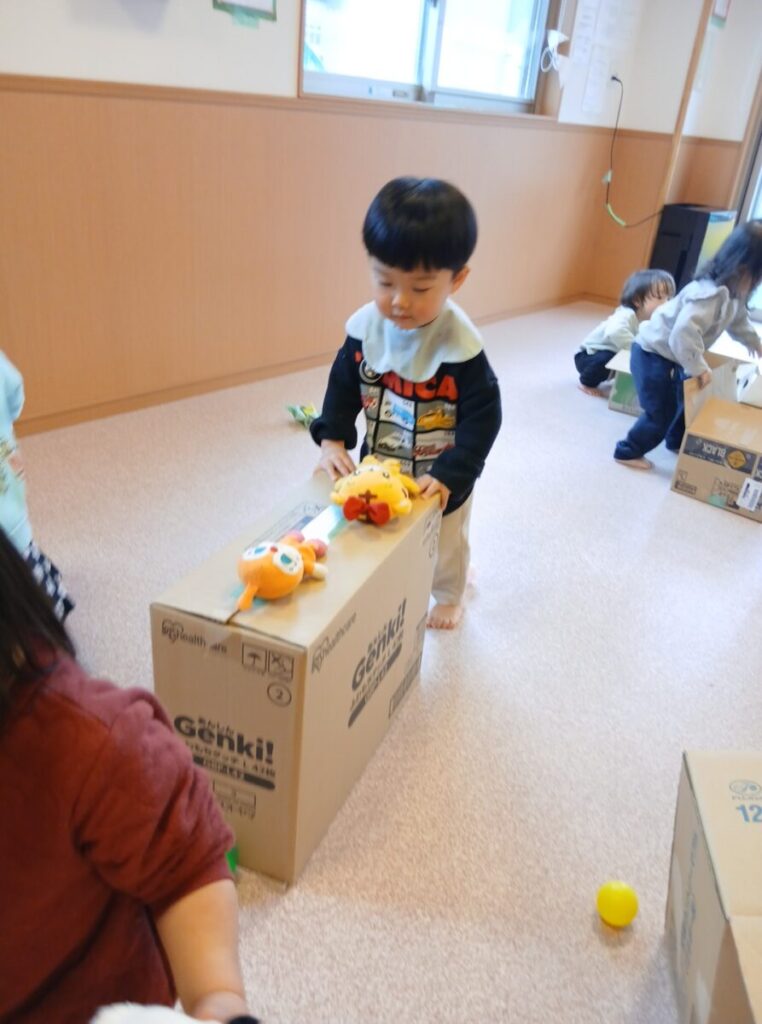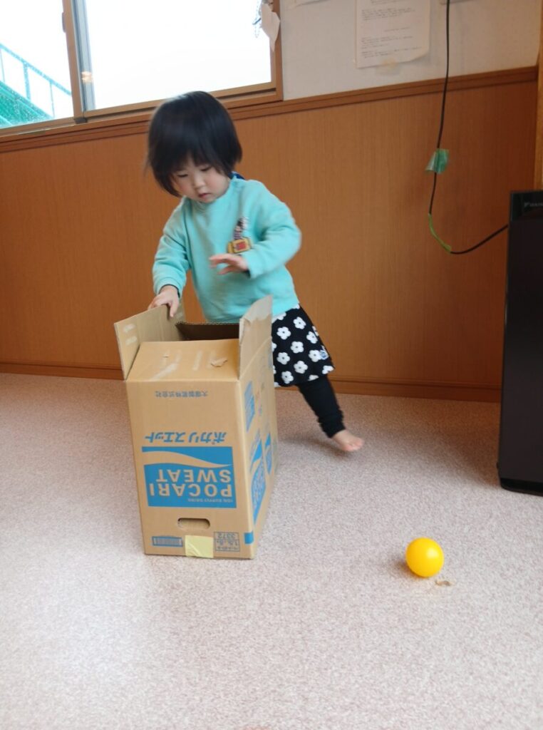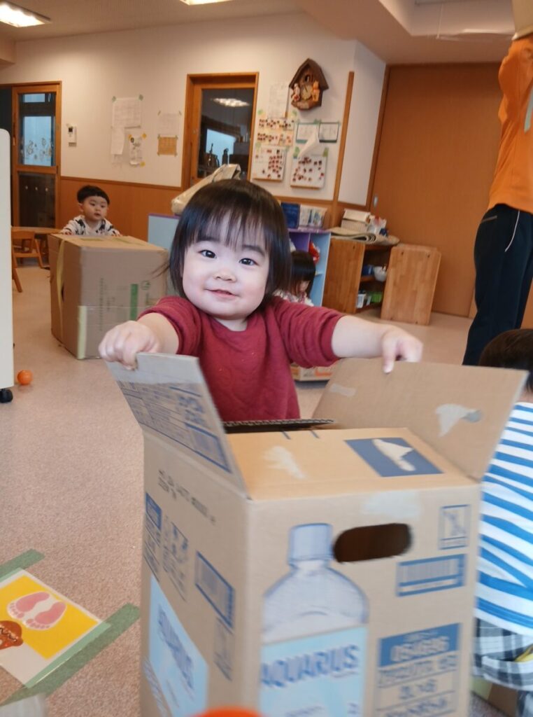 いろいろな遊び方を発見して段ボール遊びを楽しんでいました。