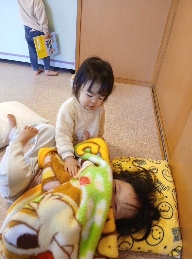 もう一人のお友達が優しいまなざしで、トントン…としてあげていました。
