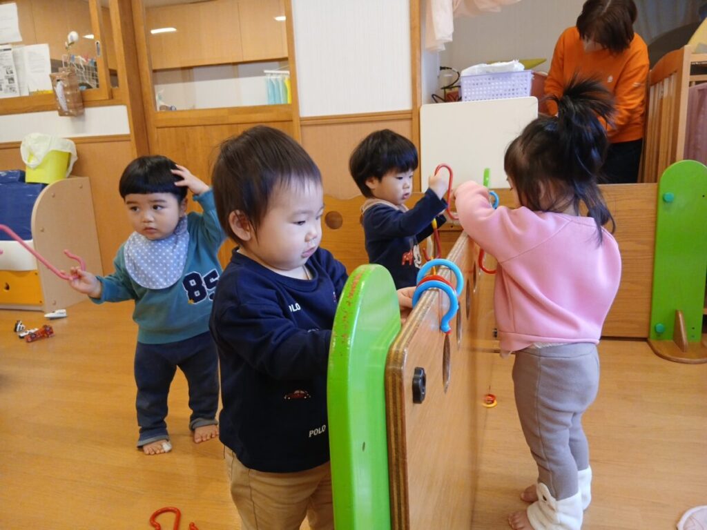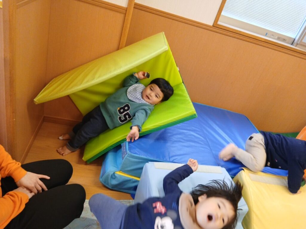 一人がやると、それを見て他のお友達も「僕もやってみようっと!」と楽しんでいました(*^。^*)
