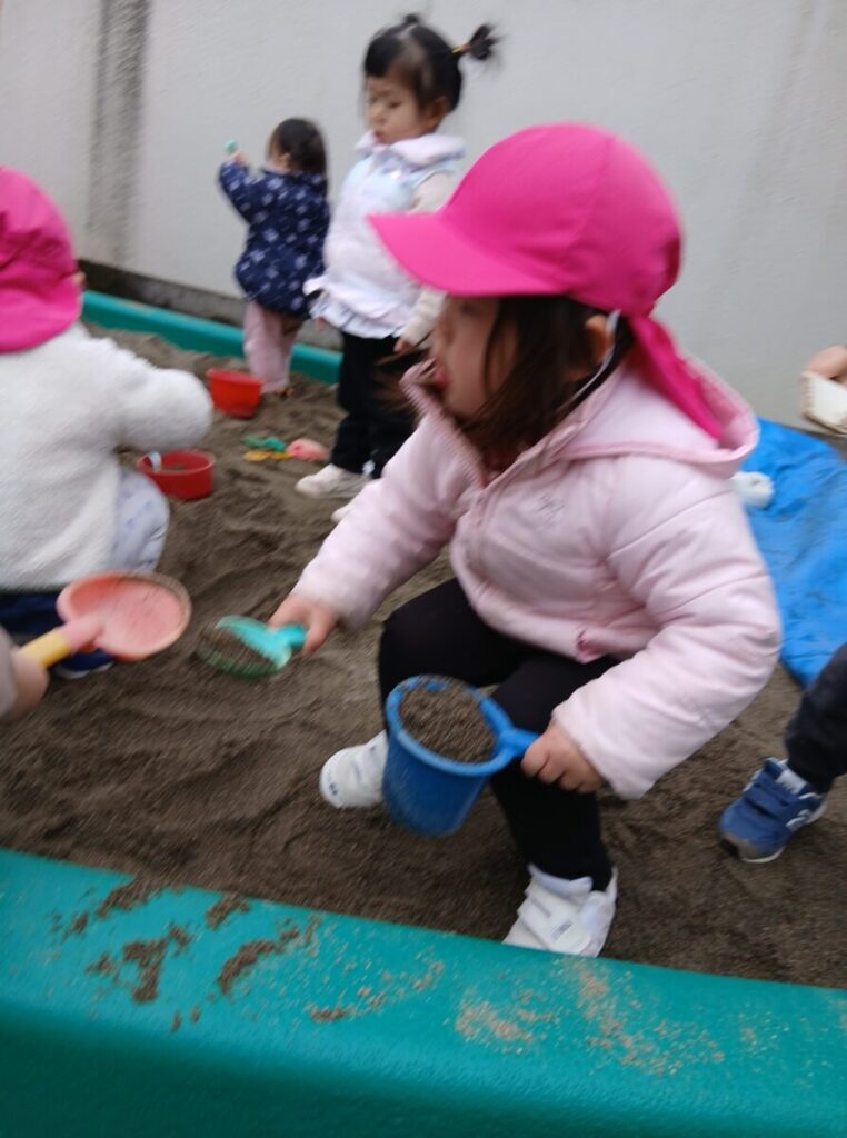 つくしさんと一緒にお山を作ったり、型抜きしてみたり…。