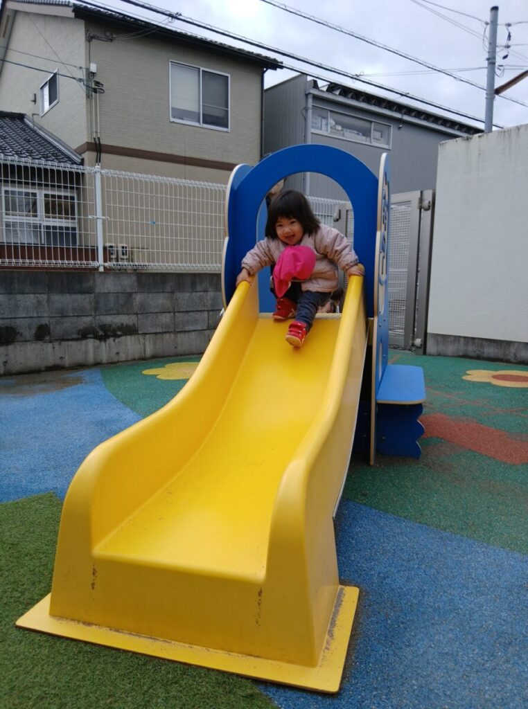 すべり台では、つくしさんが前をすべっていると、