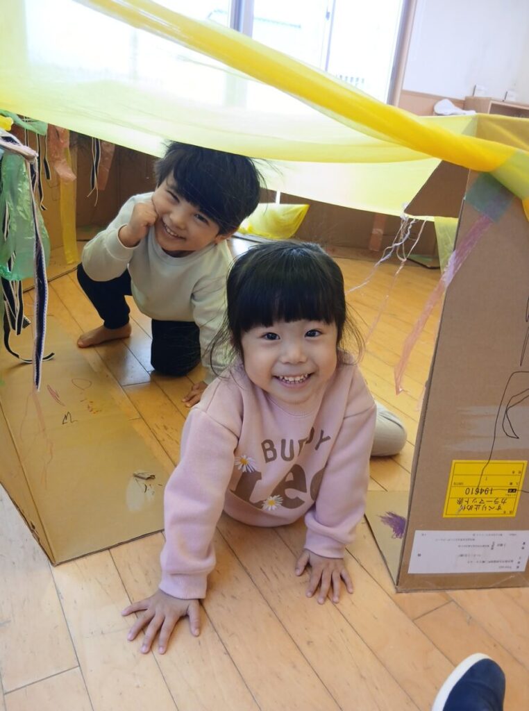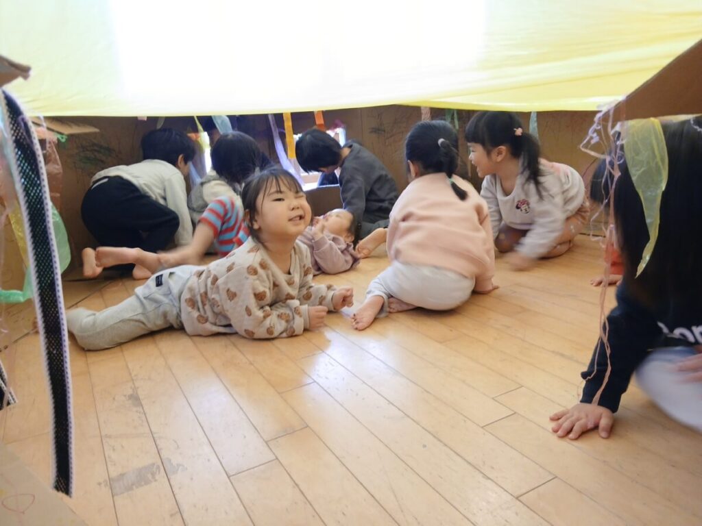 ちゅうりっぷ組のお部屋ではおままごとに段ボールのお家、そして今日は新しくスライムを用意しました!
