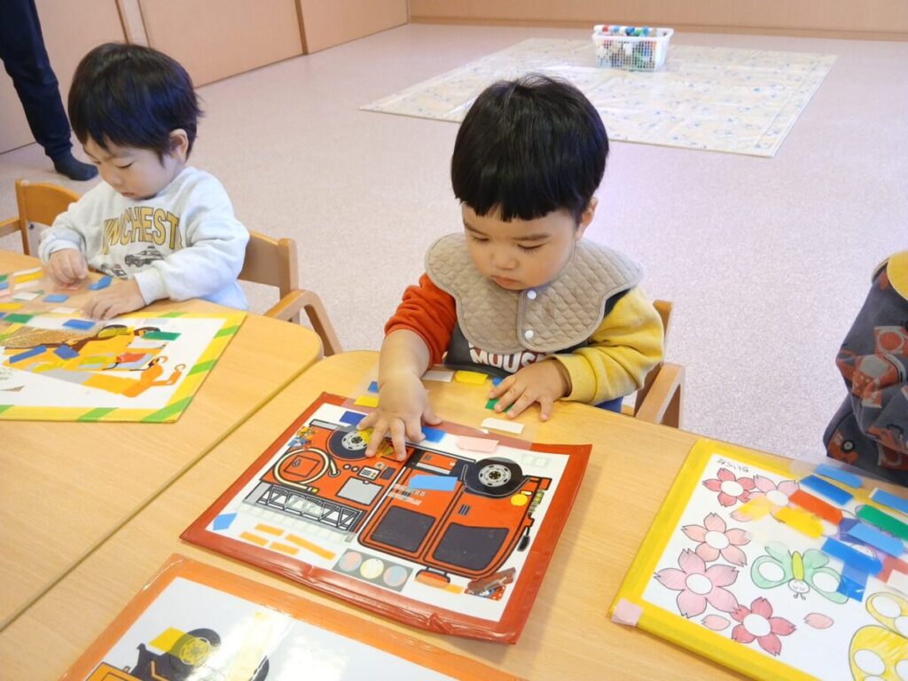 たんぽぽさんのお部屋でも遊ぶことができた、興味津々のお友だちは中に入って1歳児さんと一緒にテープ貼りをやらせてもらっていましたよ(^^)/