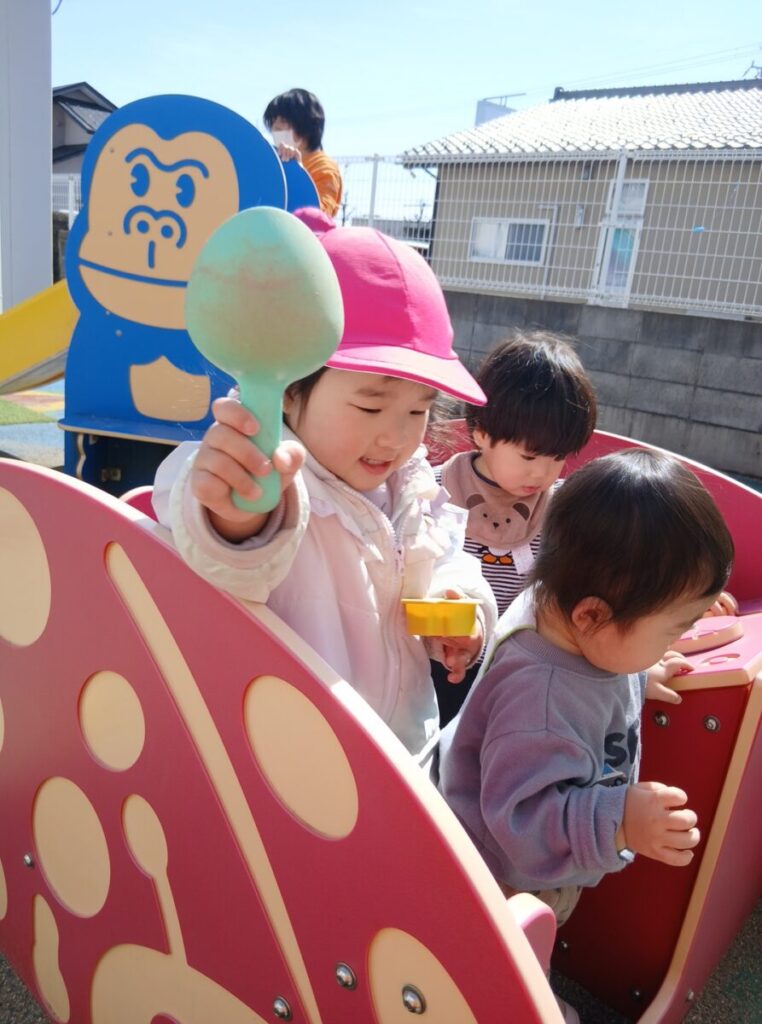 乗り物の遊具に座っていると、つくしさんがいっぱいやって来て満員に…。