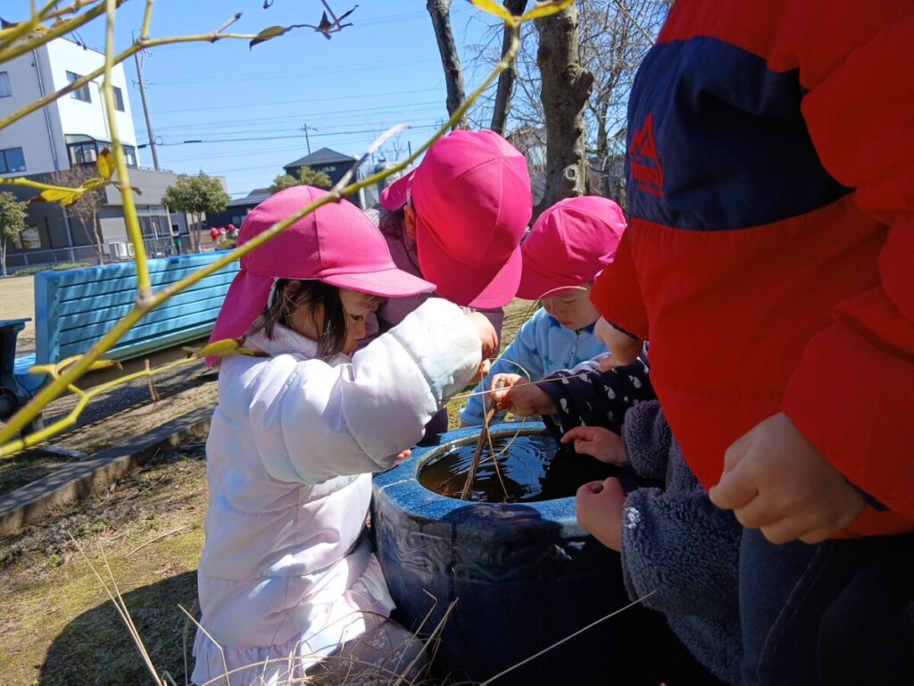 前回来た時には氷になっていた植木鉢が水になっている!と発見👀