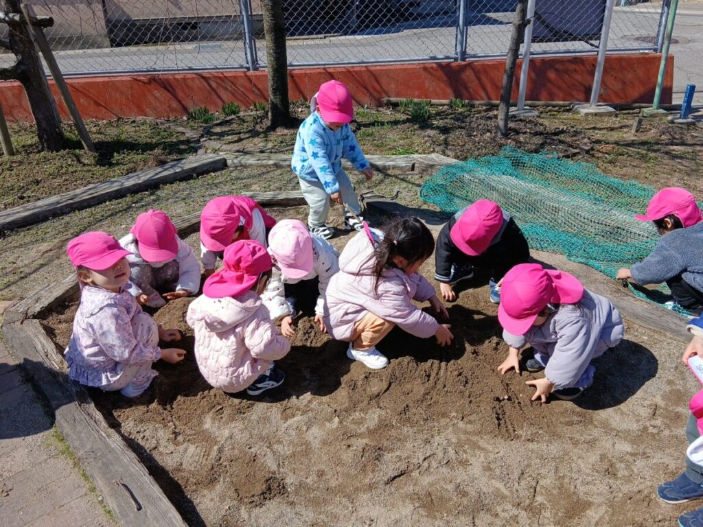 ミニミニ砂場??を見つけて、素手でお山をつくったり、穴をほったり!