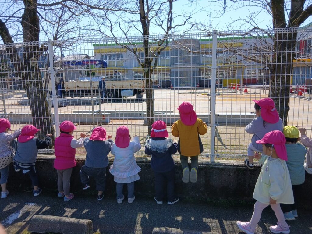 工事している所を見に行きました!なんども「こんにちはー!!」と挨拶するみんな(笑)