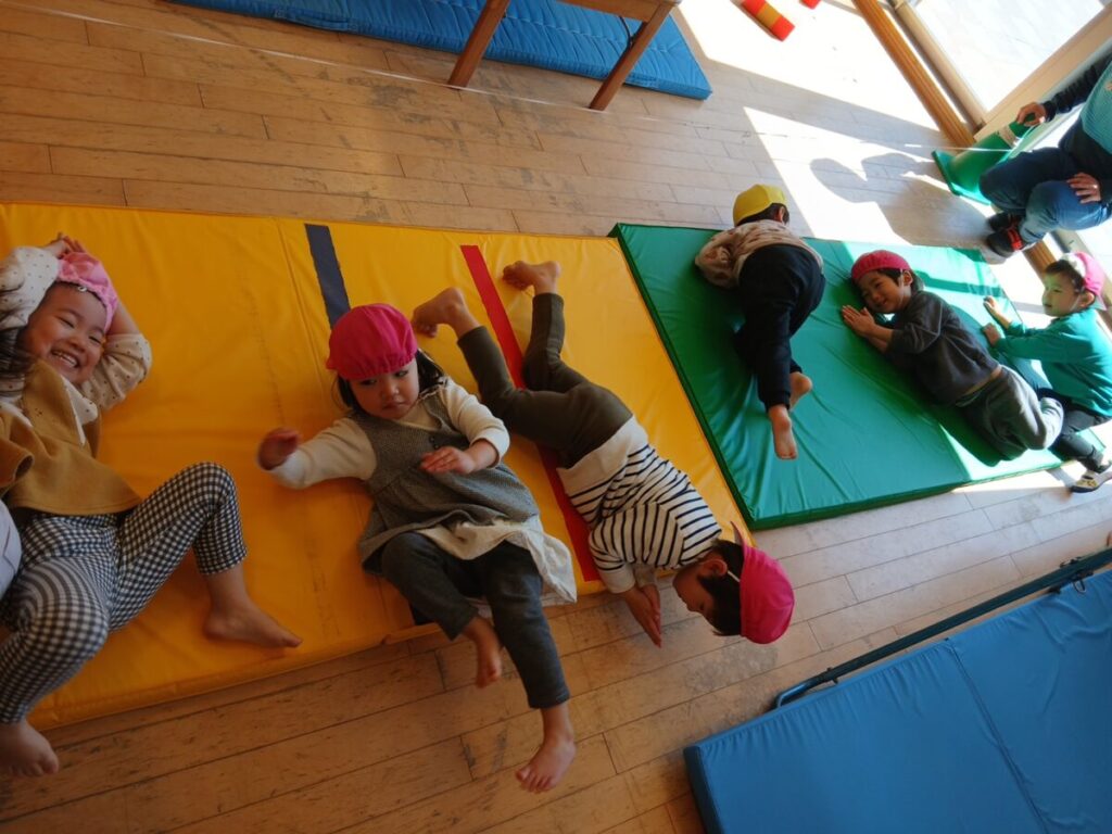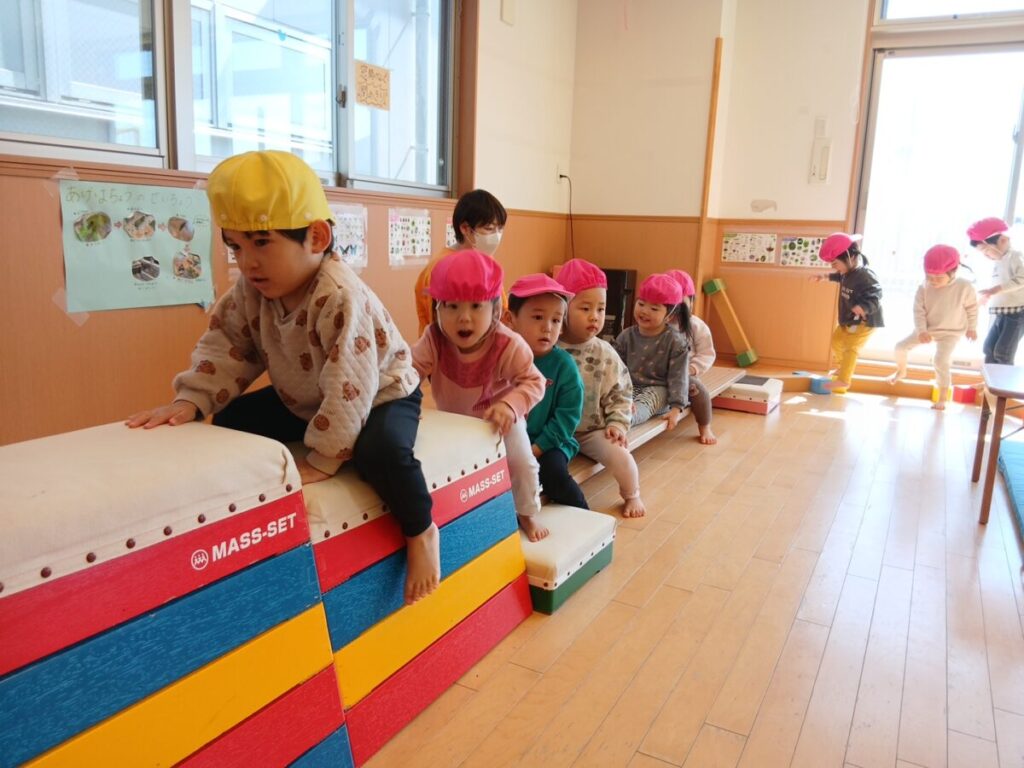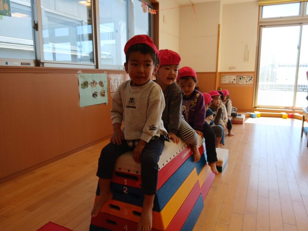 みんなが年少、中、長と大きくなった時に跳び箱が跳べるようになっていくんだな、、と楽しみです