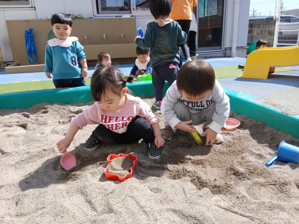 さっそく大好きな砂あそびを夢中になってあそんでいましたよ!