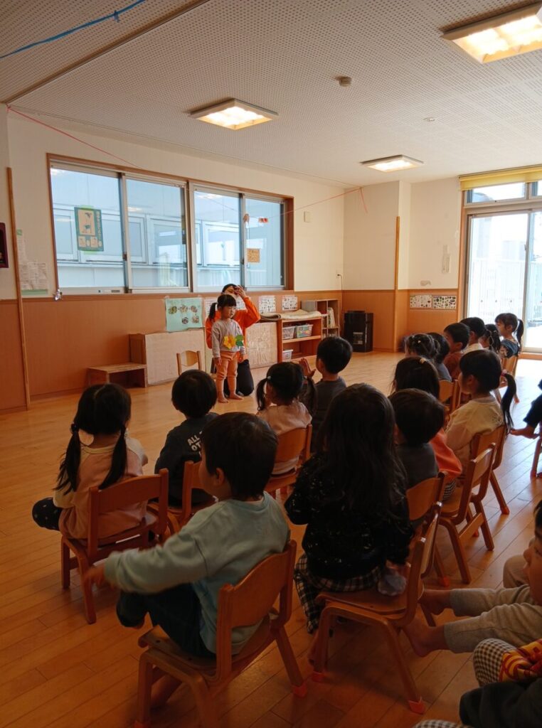 緊張しているというちゅうりっぷ組さんの誕生児のお友だちに