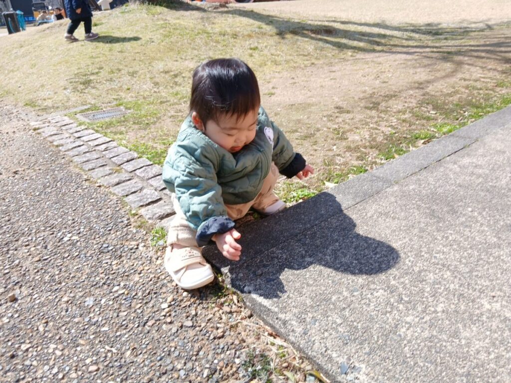 何やら真剣に見ているお友だち。何をしているのかなと近づいてみると、小さい丸い石見えますか?この小さな石を見つけたお友だちは、手でコロコロと転がしてみたりして集中してあそんでいました。まあるい小石がとっても気にいったみたいです。