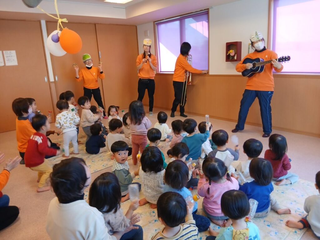 森の動物さん達?楽器の演奏でお祝いに来てくれました。