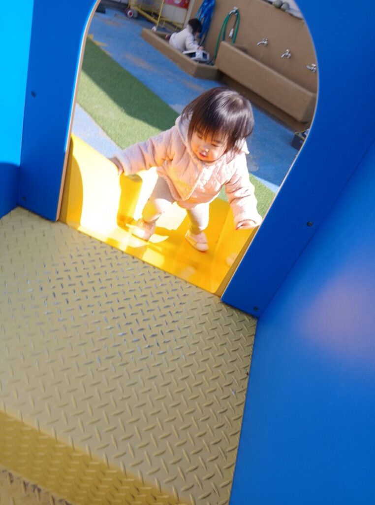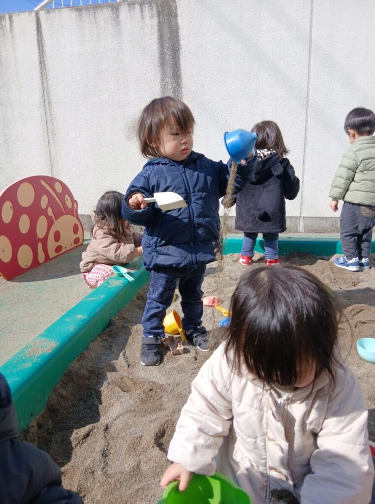 暖かい日差しのもと、砂場やすべり台で、のびのびと遊びました。