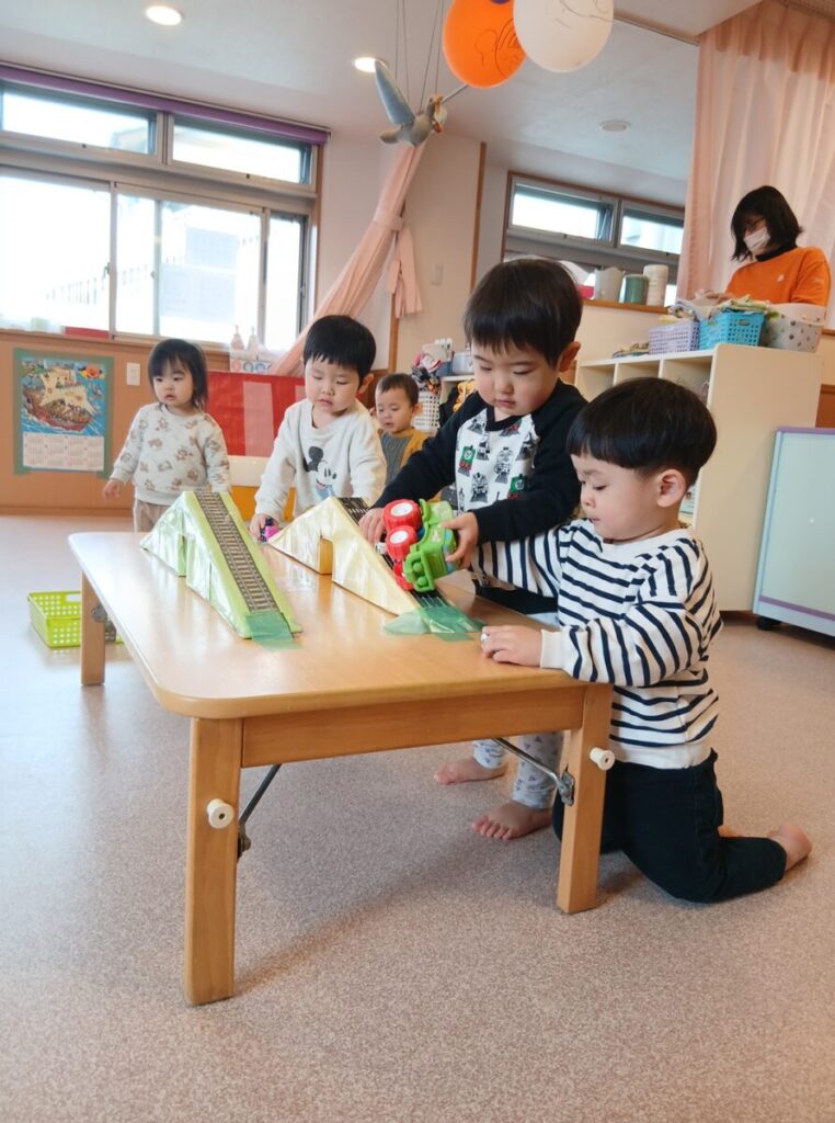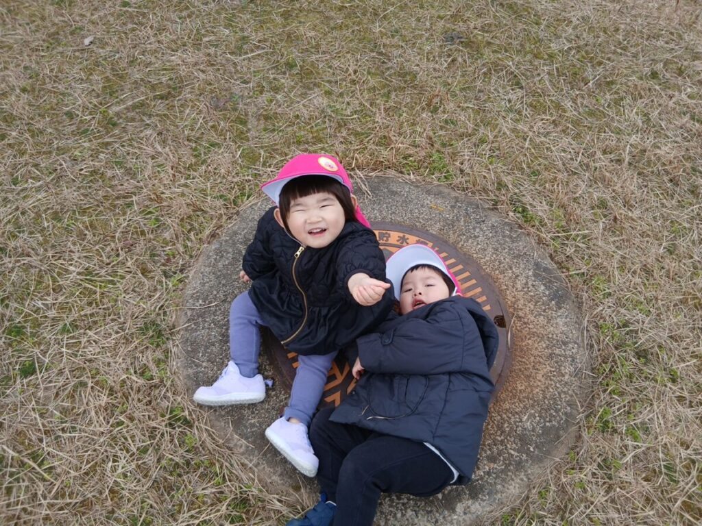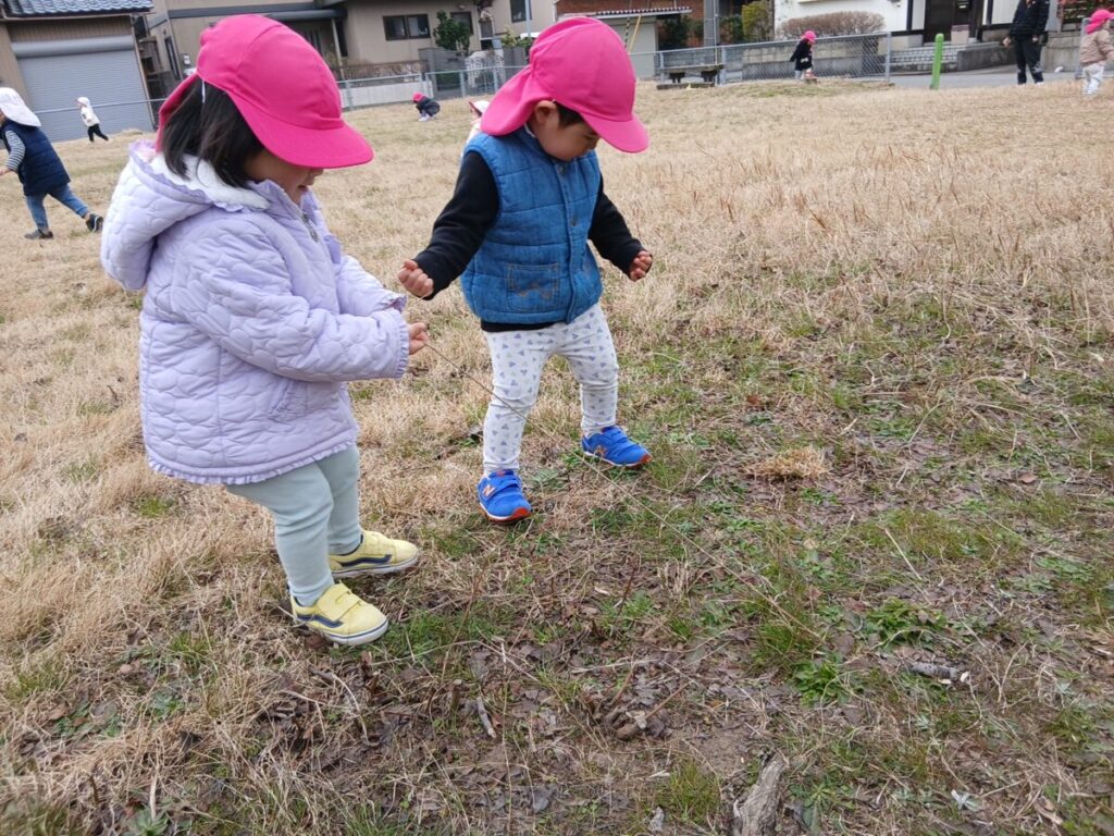 今日は、すみれ組さんと一緒に、公園へ行きました。