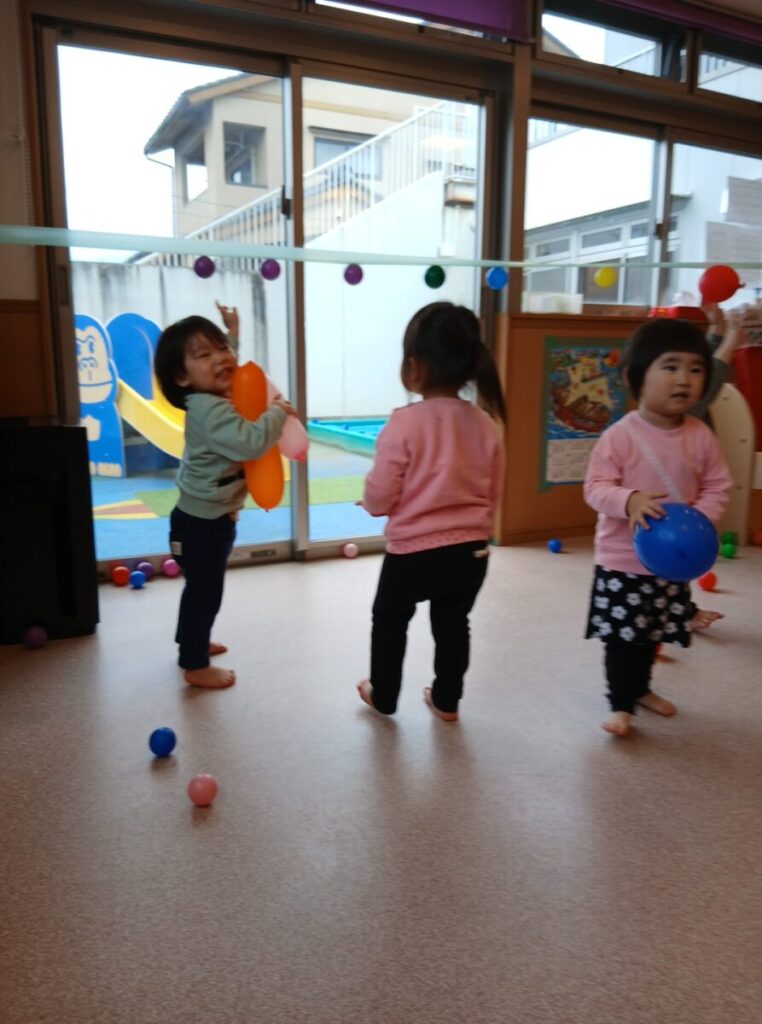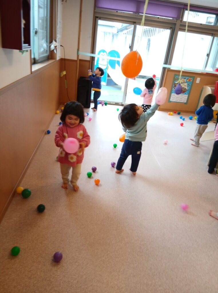 ボールと風船で遊びましょう。