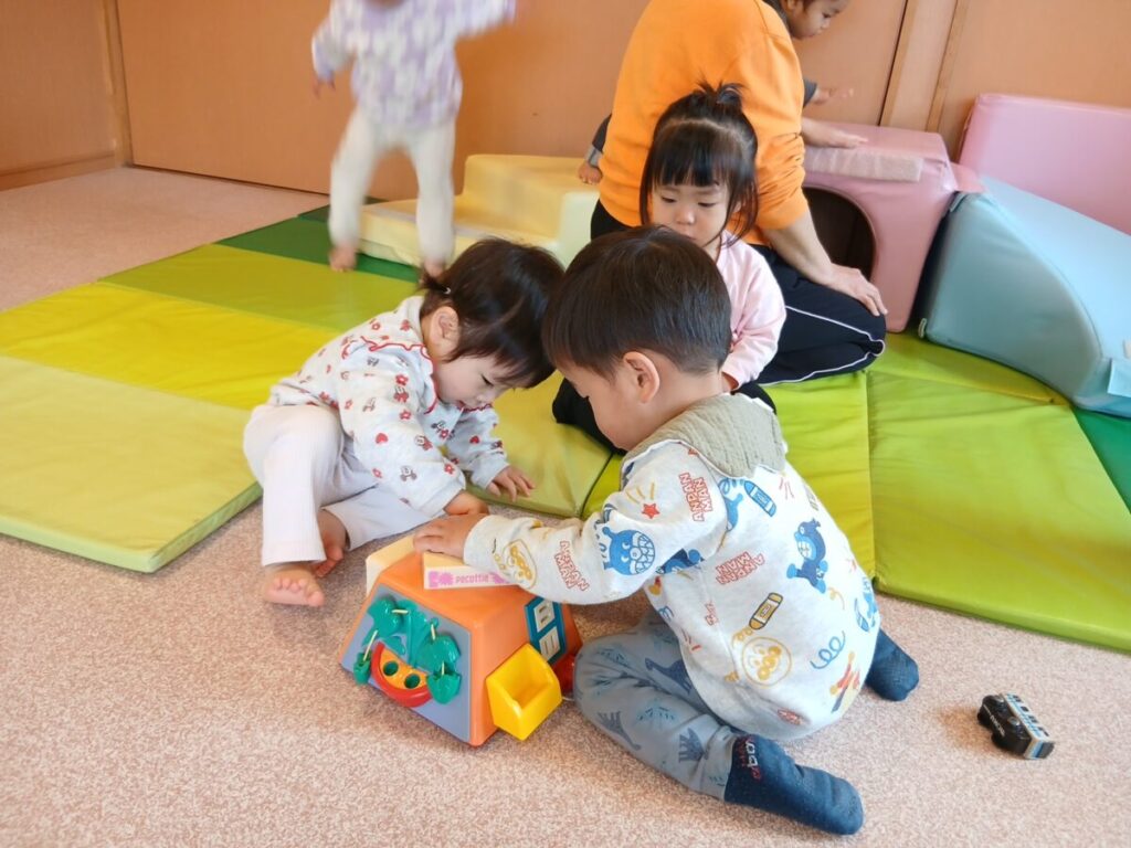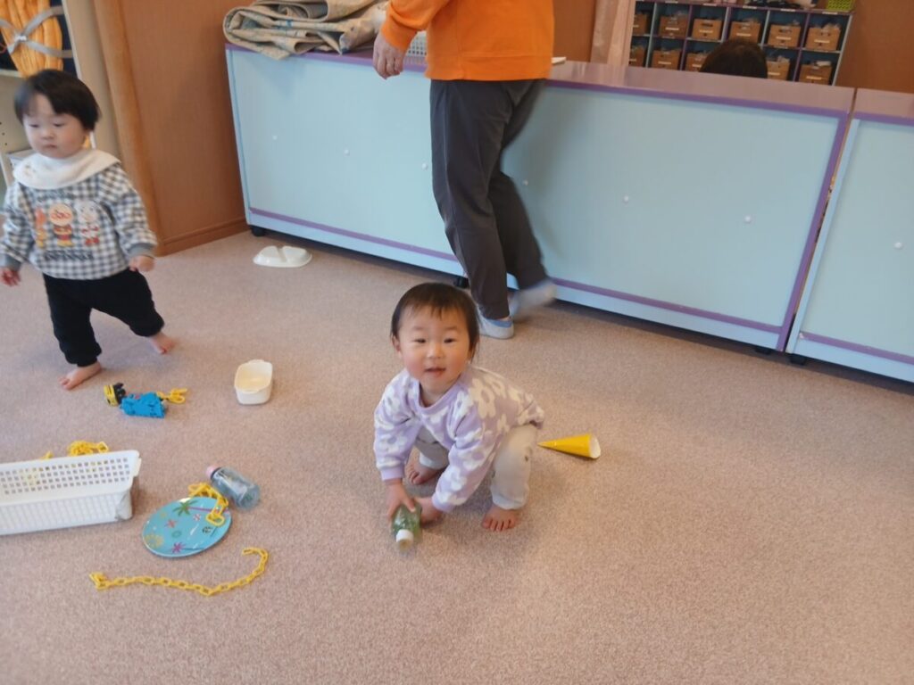 泣いてくる子が多いですが中にはすぐに泣き止んであそぶ子もいました。