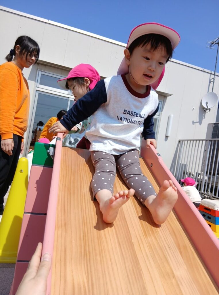 勢いよく滑り台!!しゅーーー!
