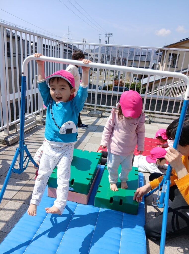 鉄棒ぶら下がり!自分でできちゃうんです!すごい!
