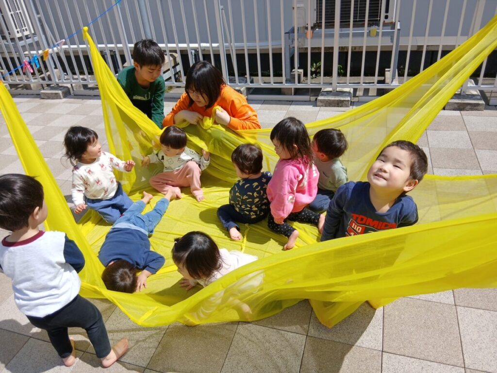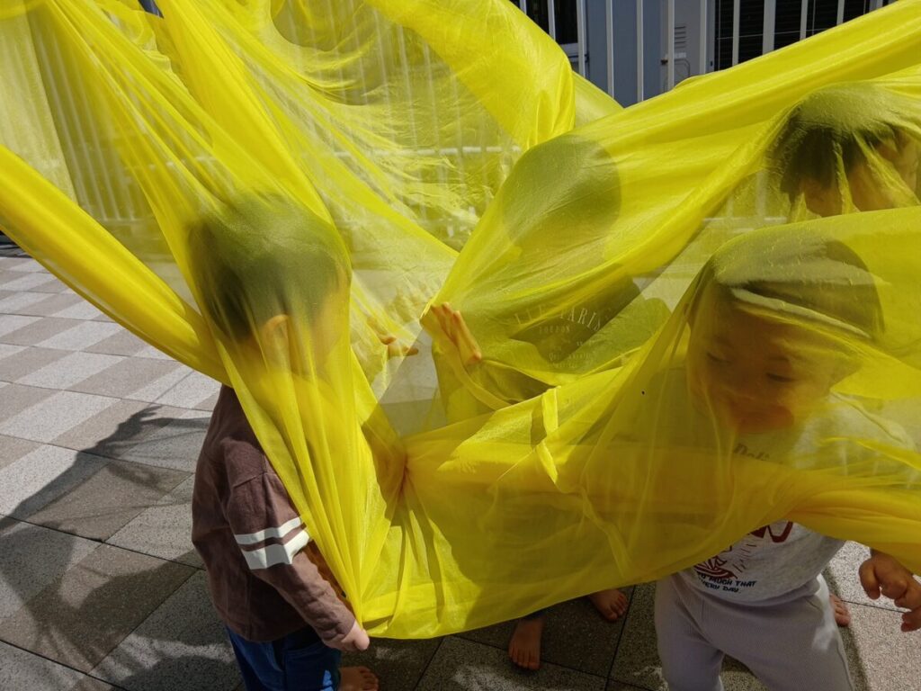 風邪で布がふわ~~と浮かんで子どもたちもこの笑顔♡