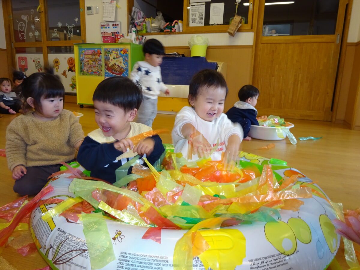 つくし組 スズランテープで遊びました
